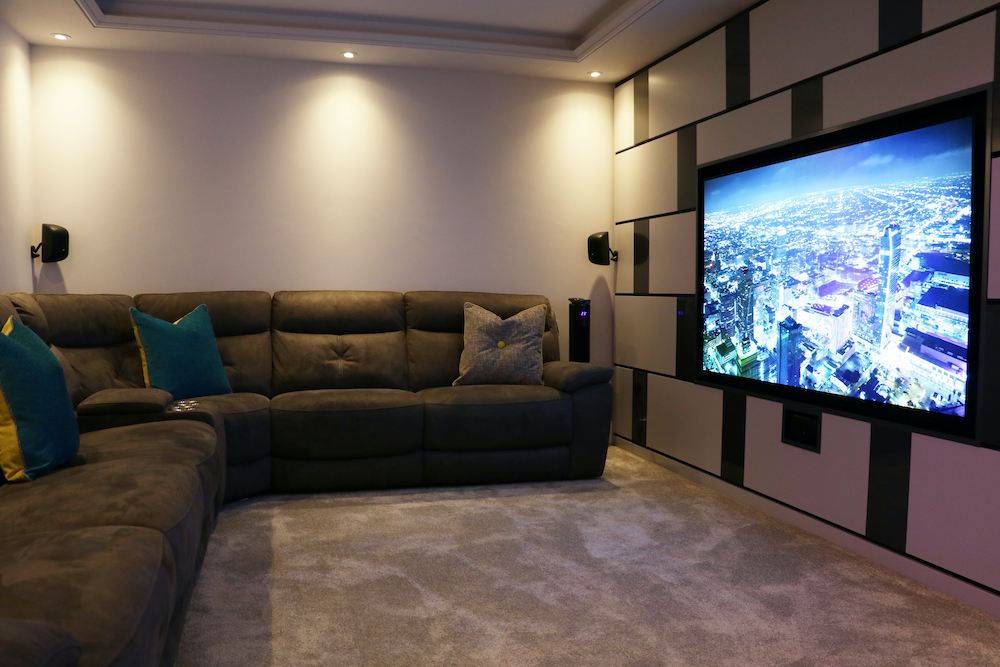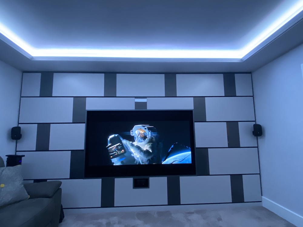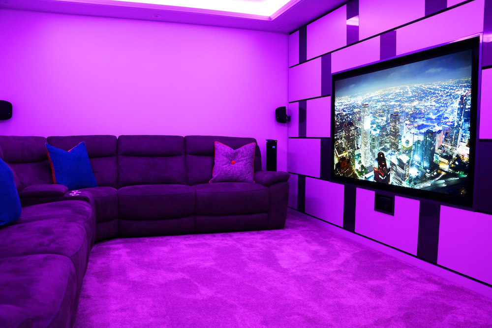 Colour change Led was used around the drop ceiling and around the feature ceiling plinth in the media room