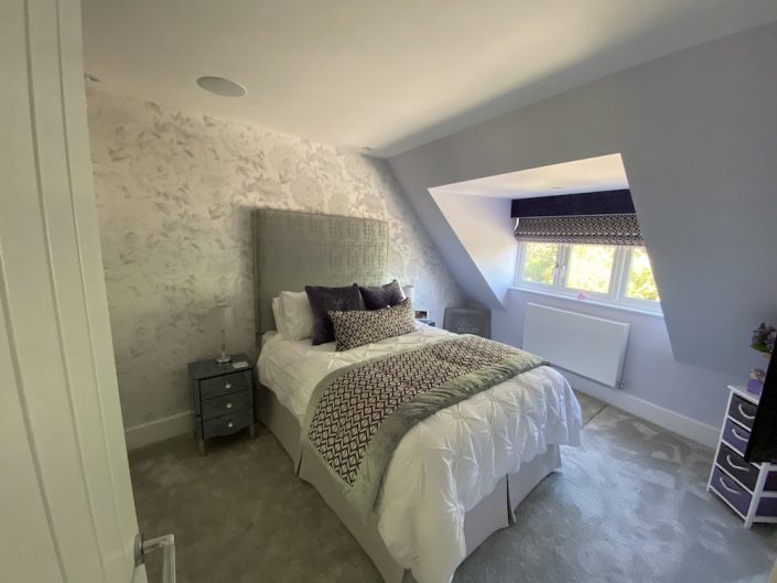 French doors were fitted with a glass balustrade looking out over the garden. 4 Velux windows were also fitted to give more light into the rooms. Bespoke bedroom furniture was fitted and also into the dressing room